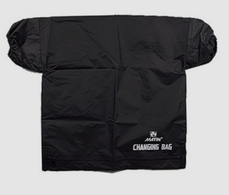 지퍼를 열고 필름, 현상통, 가위를 넣고 위 반팔 부분에 손을 넣어서