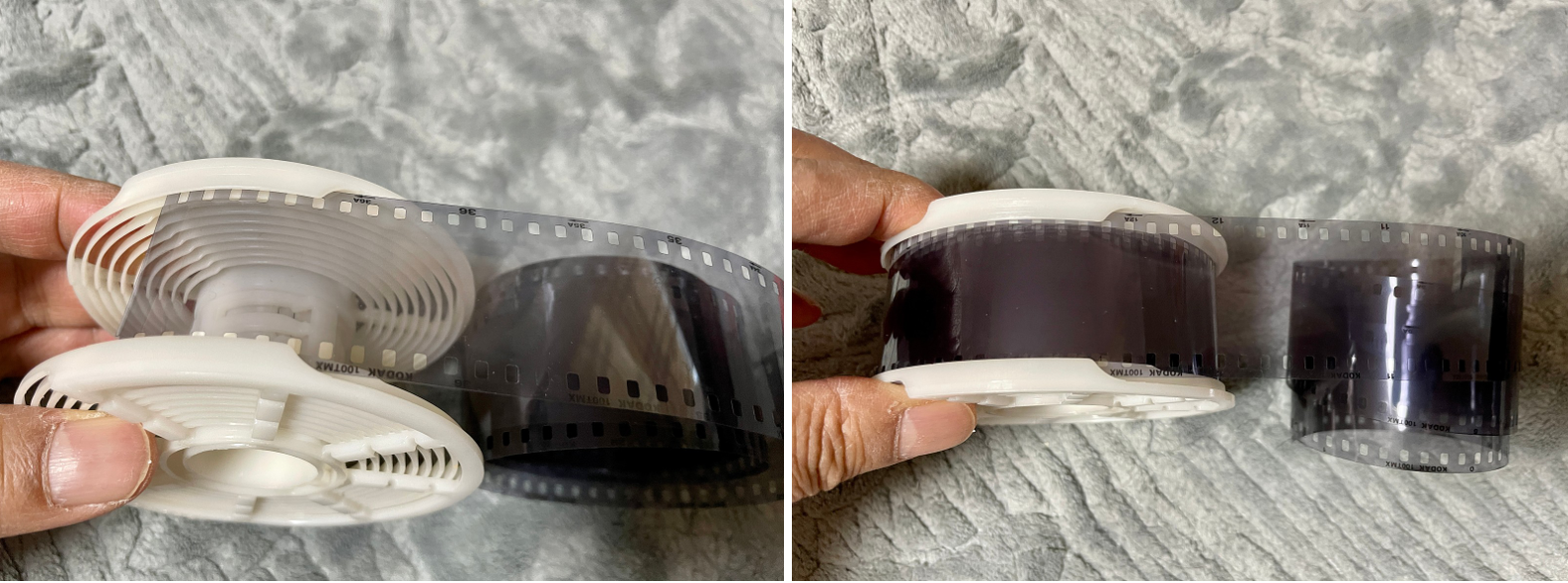 좌측사진이 jobo 1501현상릴인데 135필름을 사용할 때는 왼쪽처럼 밀어 넣고