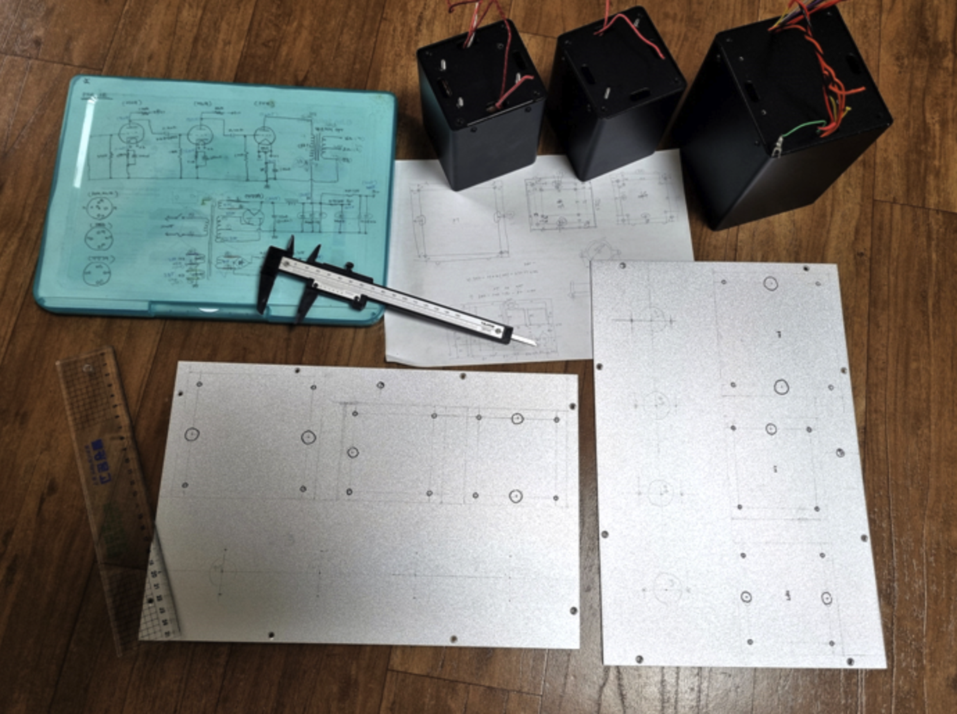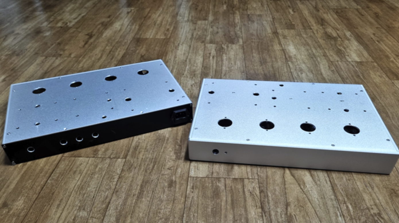 새롭게 제작할 앰프의 샤시와 해체 직전의 험 많고 탈 많은 앰프를 비교해 봅니다.