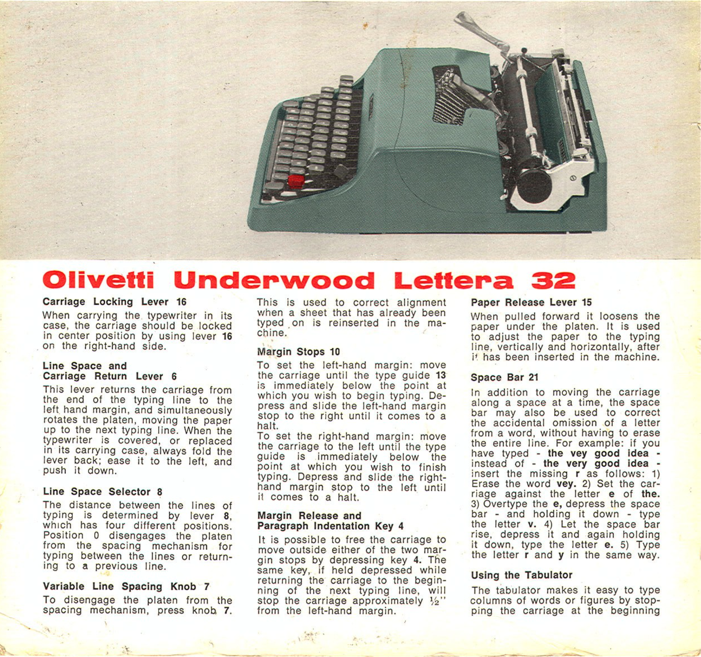 From the typewriters community on Reddit: Lettera 32 Carriage Loose