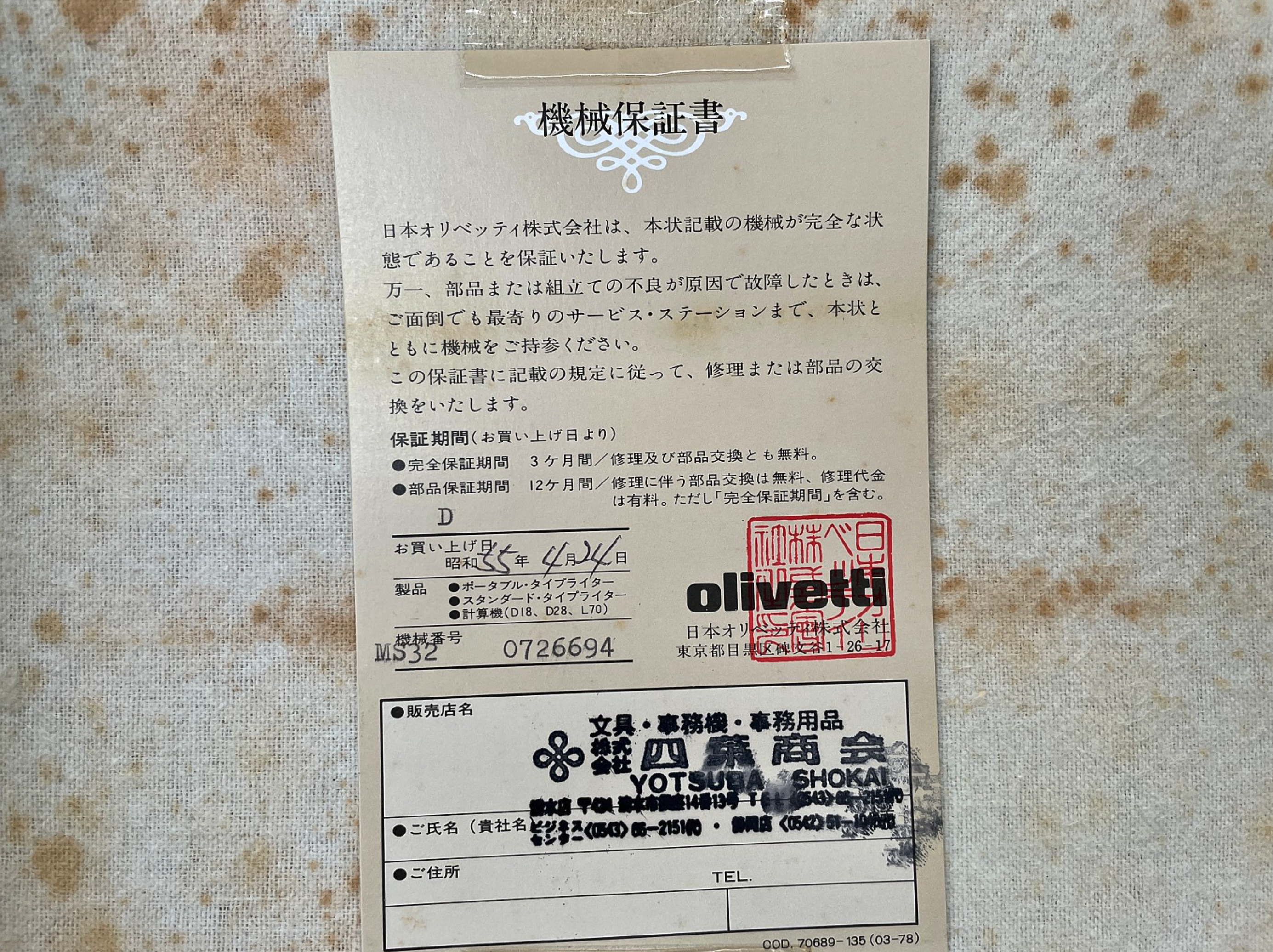 파우치안에 붙어 있는 기계보증서를 보니 소화55년(1980년) 4월에 일본에서 수입했더군요.