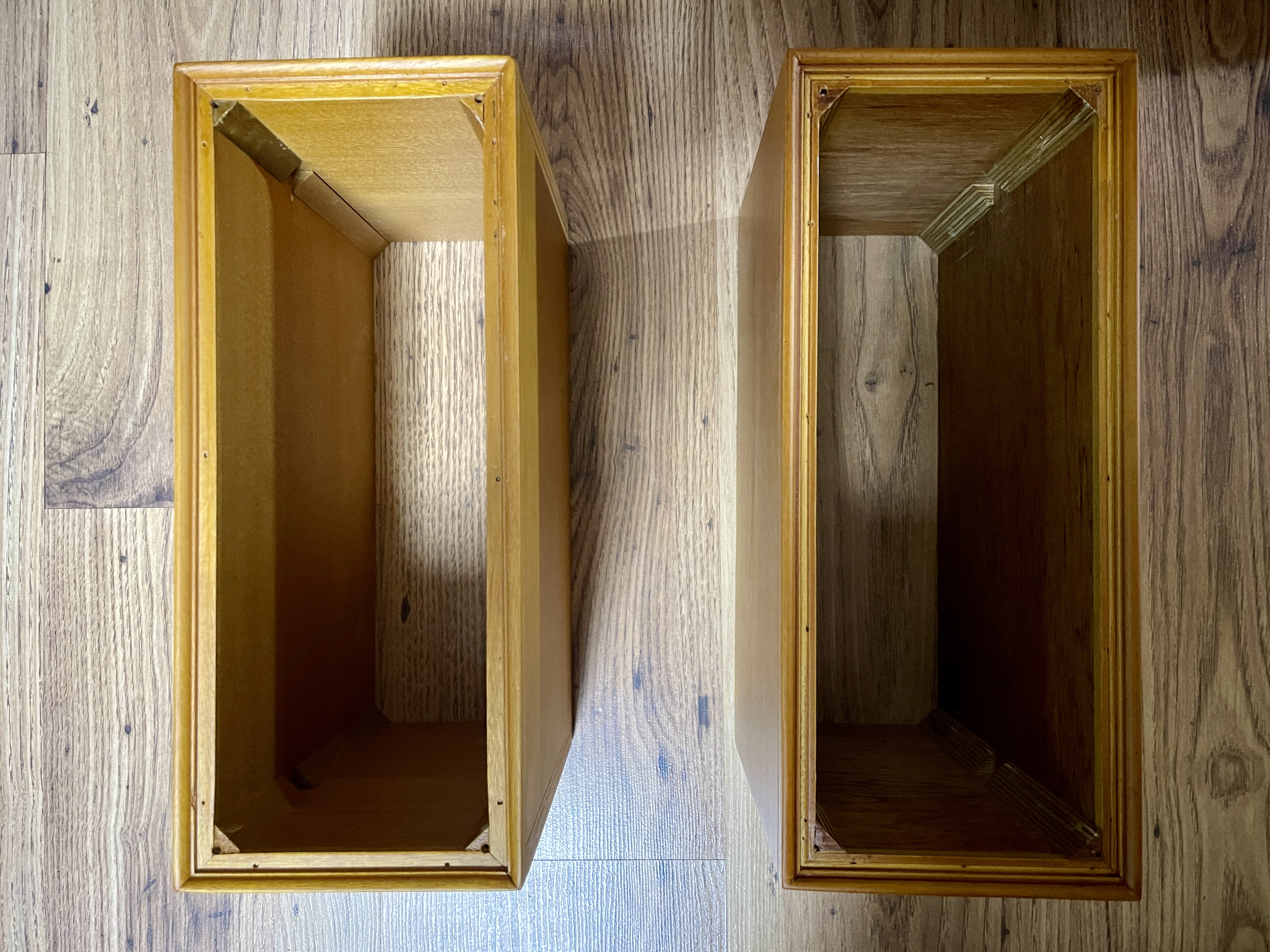 오른쪽이 복원해서 새로 제작한 보이스우드의 우드케이스이다.