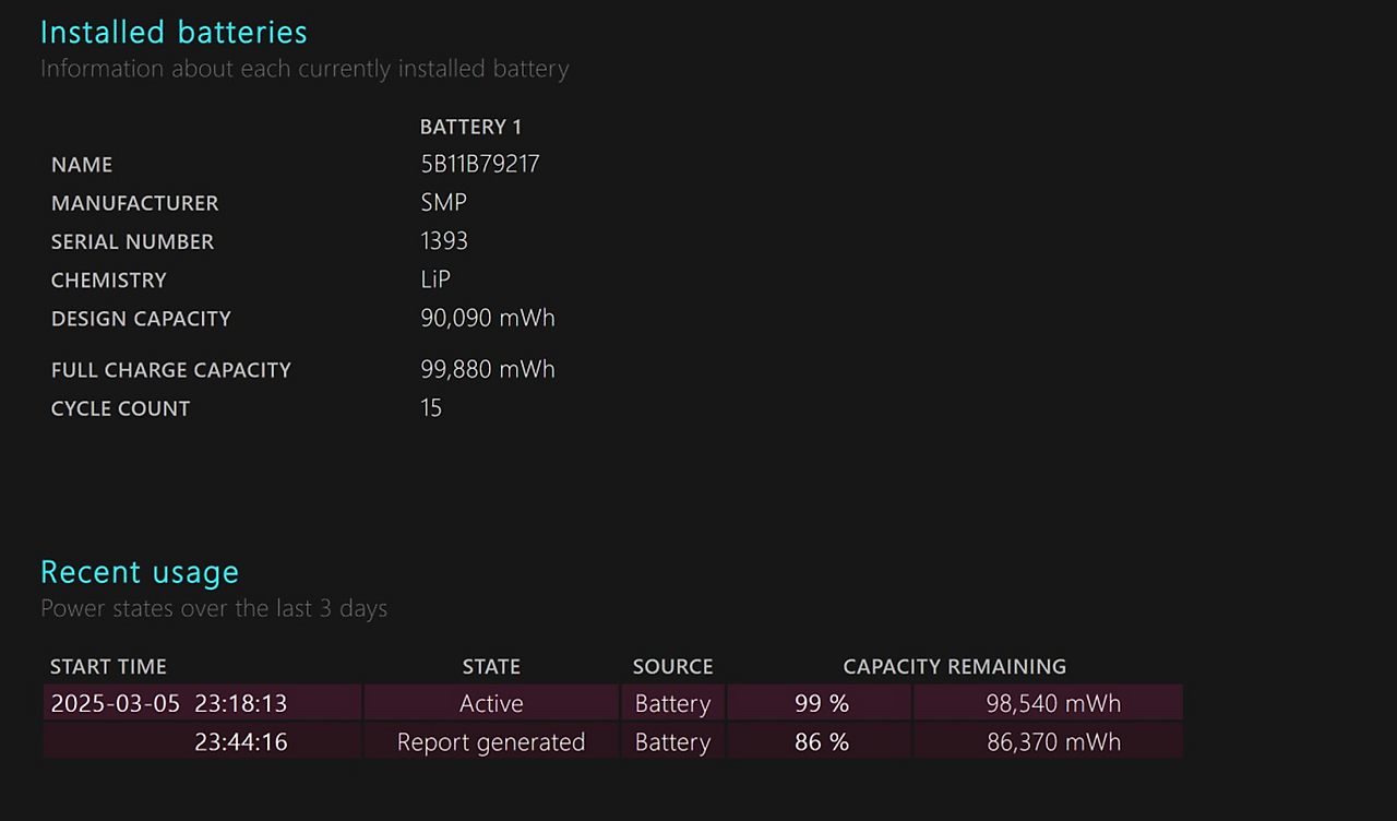 다만 많은 분들이 아쉬워하셨듯이 pd충전을 하면 경고메시지가 떠서 거슬리고 단일 충전하면 100w 스펙인데 88w를 넘기지 못하는데 케이블 문제인지, 충전기 문제인지 판단이 안되네요. 집에서 사용할 레노버 170w/230w 충전기를 사야하나 살짝 고민이 되기도 합니다.