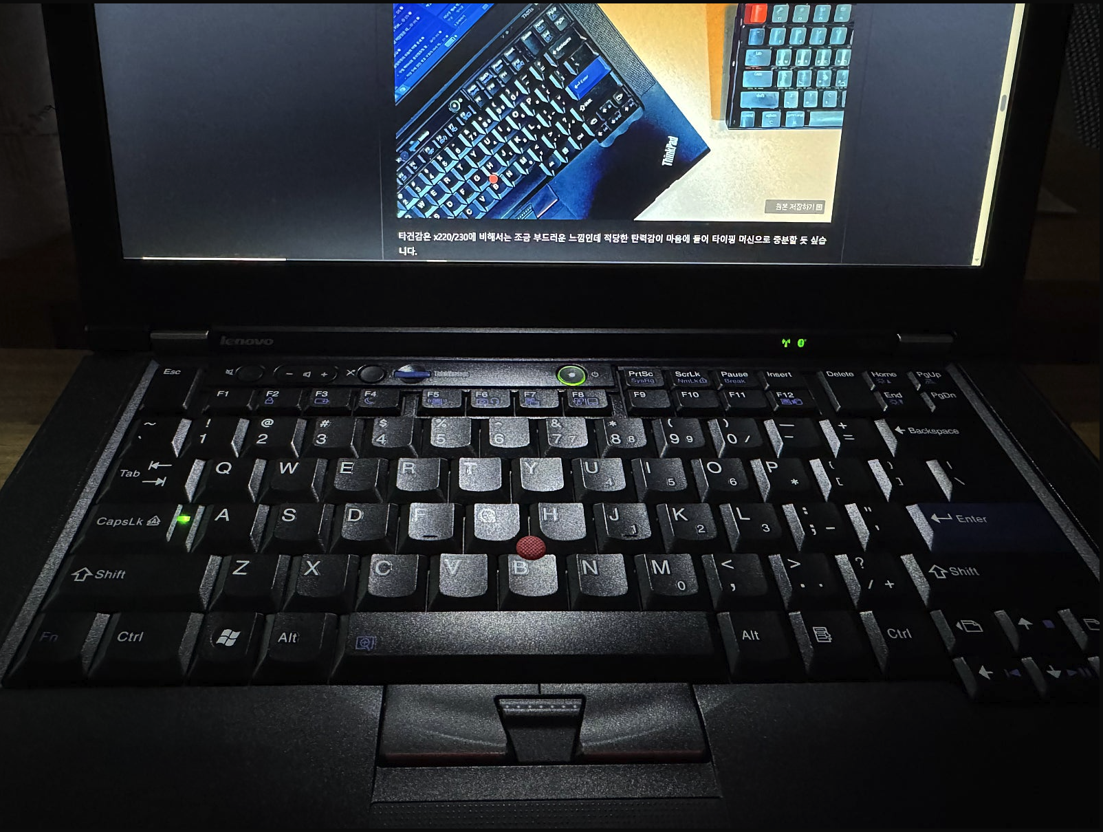 타건감은 x220/230에 비해서는 조금 부드러운 느낌인데 적당한 탄력감이 마음에 들어 타이핑 머신으로 충분할 듯 싶습니다.