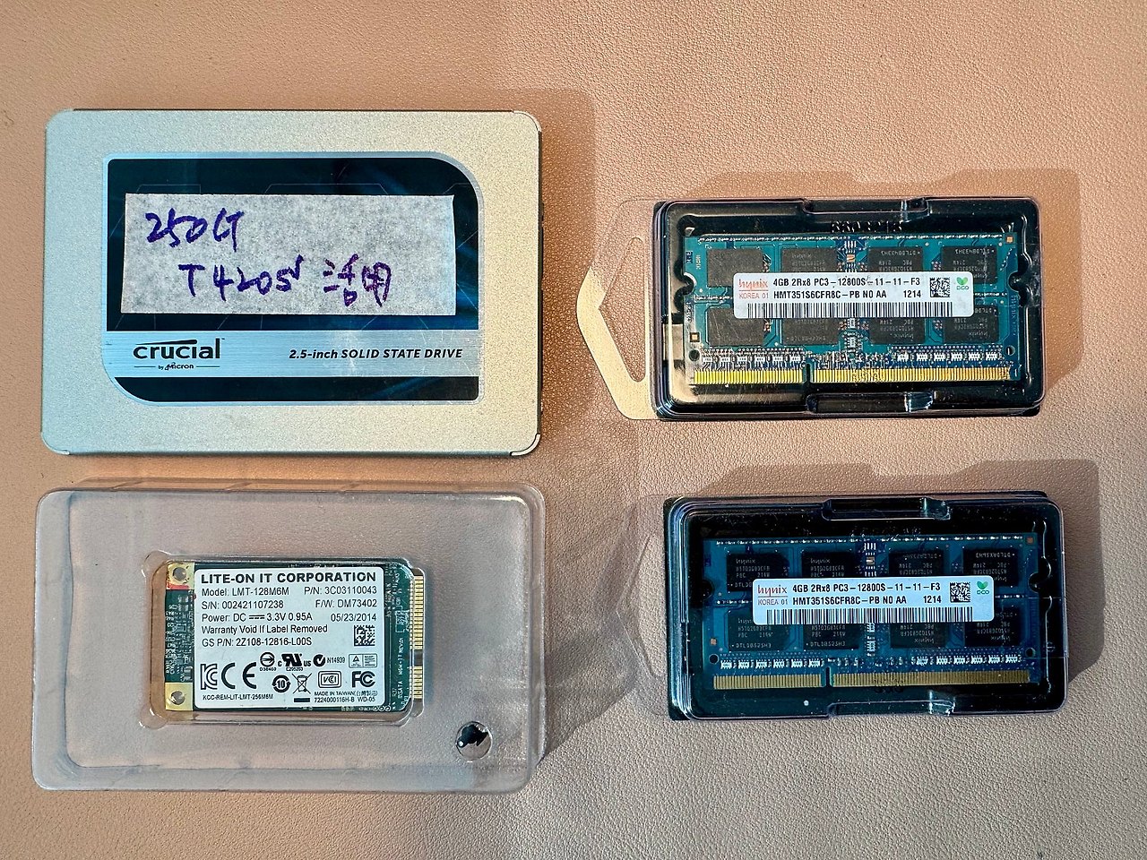 샐러가 표기한 스펙은, i5-2520m, 4g ram, 500g hdd, 1600*900해상도인데 업그레이드 고민을 시작합니다. 검색을 통해 tn 액정을 ips fhd 액정으로 교체가 어렵지 않다는 걸 알아냈지만 교체할지는 상태를 보고 결정하기로 하고, 셀러가 장착하지 않은 mSATA ssd(256g)를 추가하기 위해 알리에 주문을 하고 500g hdd는 서랍안에서 잠자고 있는 250g ssd로 교체하려고 준비해 놓습니다. 램은 지난번 x230을 16기가로 업그레이드하며 보관중인 4기가 램 2개를 활용하기로 하고요.